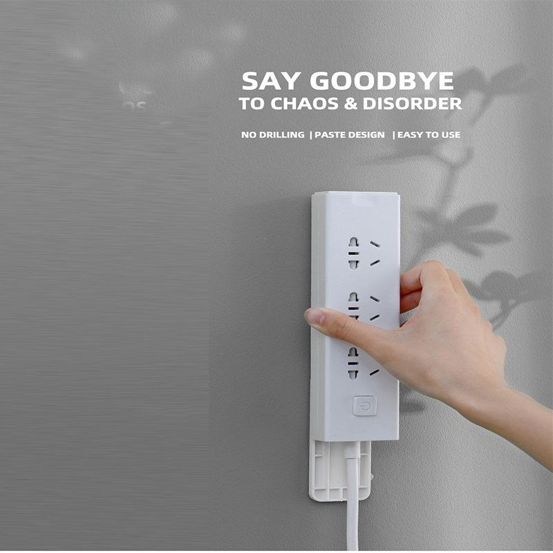 Plug Board Holder Socket Storage Wall-Mounted Extension Cord Holder Strong Paste without Punching for Power Strips Routers Remotes Wall Fans 360 Rotation