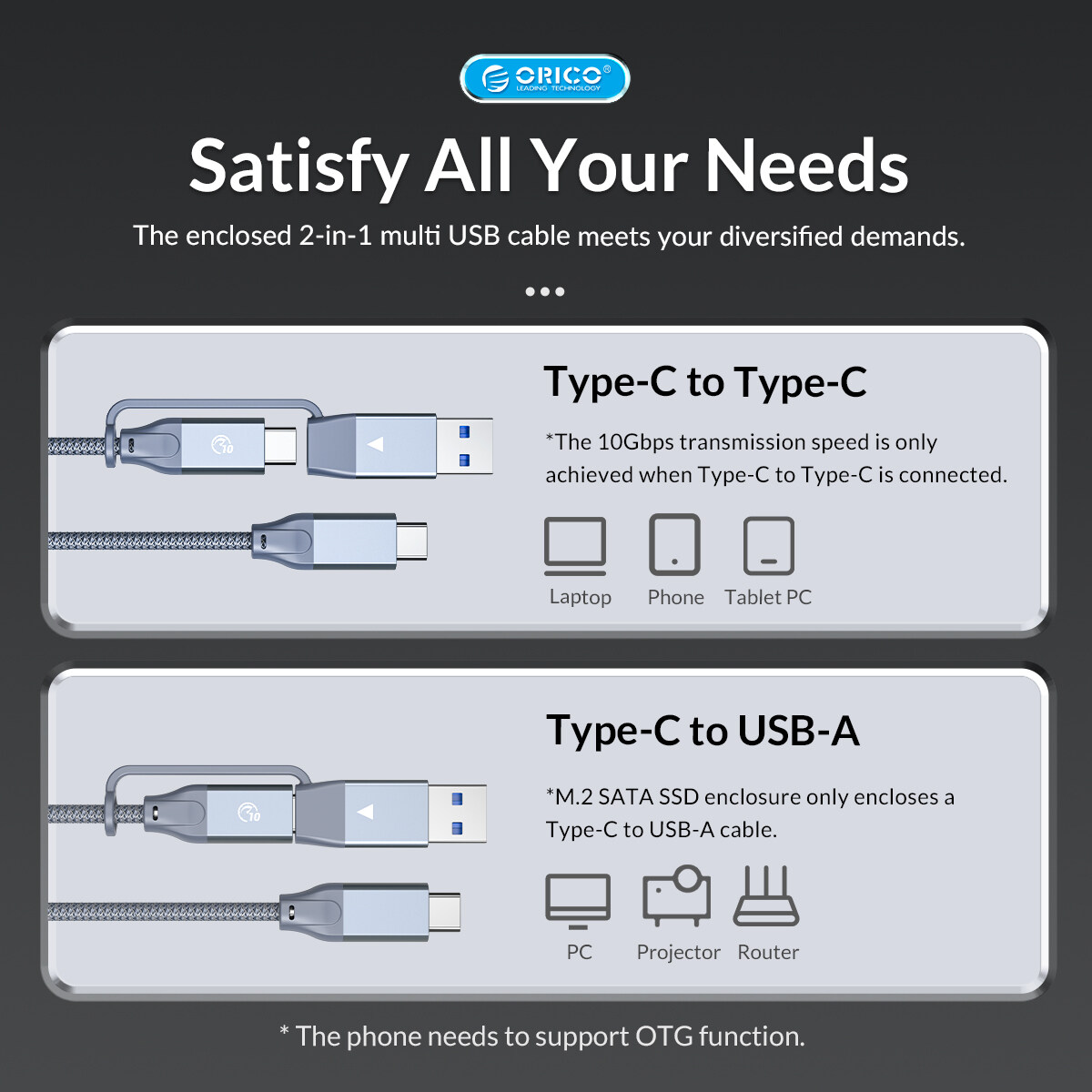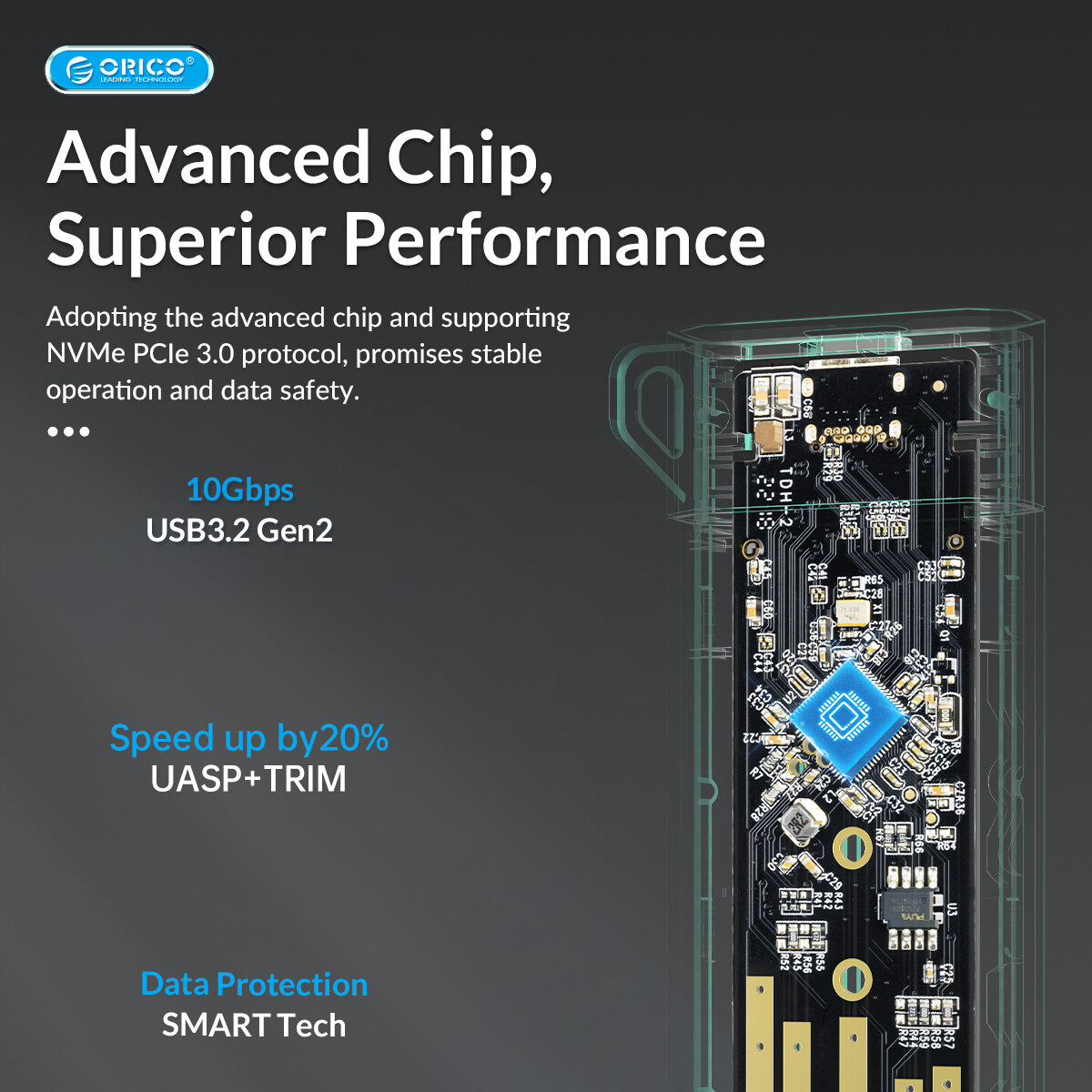 SSD Enclosure ORICO M.2 Case NVMe USB Type C Gen2 10Gbps PCIe SSD Enclosure SATA NGFF 6Gbps Hardisk Enclosure Solid State Drive Case Data Storage External Hard Drives