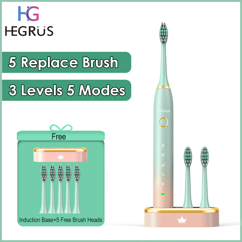 HEGRUS Electric Toothbrushes Sonic Electric Toothbrush IPX8 Waterproof USB Rechargeable Toothbrush Electric Toothbrush Tartar Remover Portable Sonic Remover Personal Household Dental Care with 5 Repla