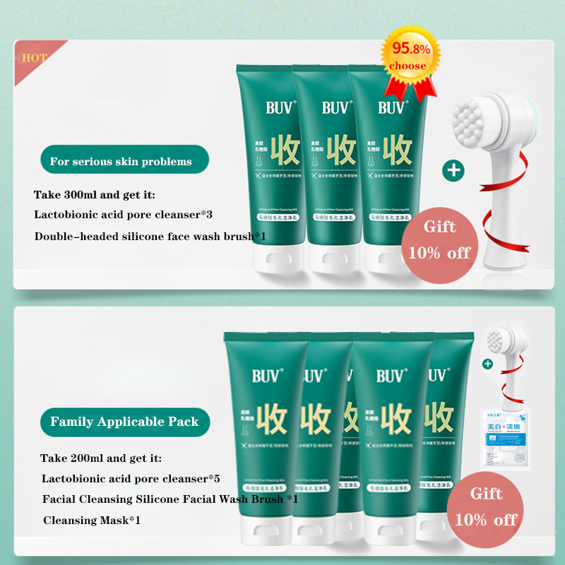 Product Name: BUV Lactobionic Acid Pore CleanserProduct specification: 100mlProduct Highlights: Cleans skin with delicate poresHow to use: After wetting the face with lukewarm water, take an appropriate amount of cleanser in Xuexin, rub it gently to create a rich foam, and apply the foam to the cheeks and forehead. Chin and other skin, massage from the inside out for a while, then rinse off with lukewarm water.