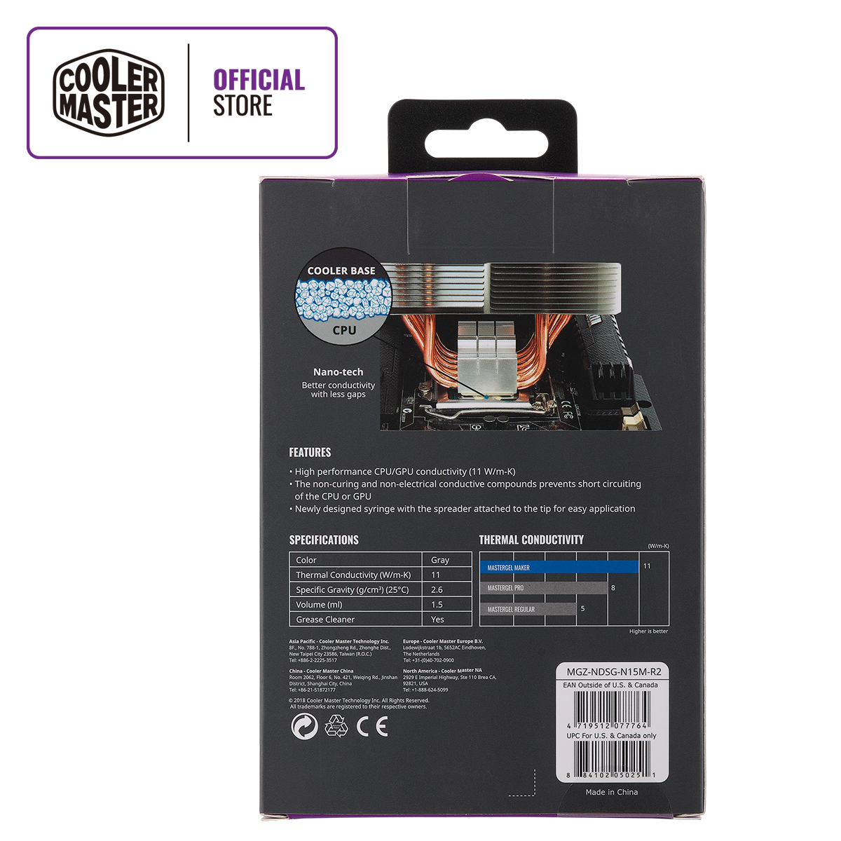 - 1.5mLCooler Master MasterGel Maker Thermal Paste, 11 Thermal Conductivity, Flat-nozzle Syringe Design