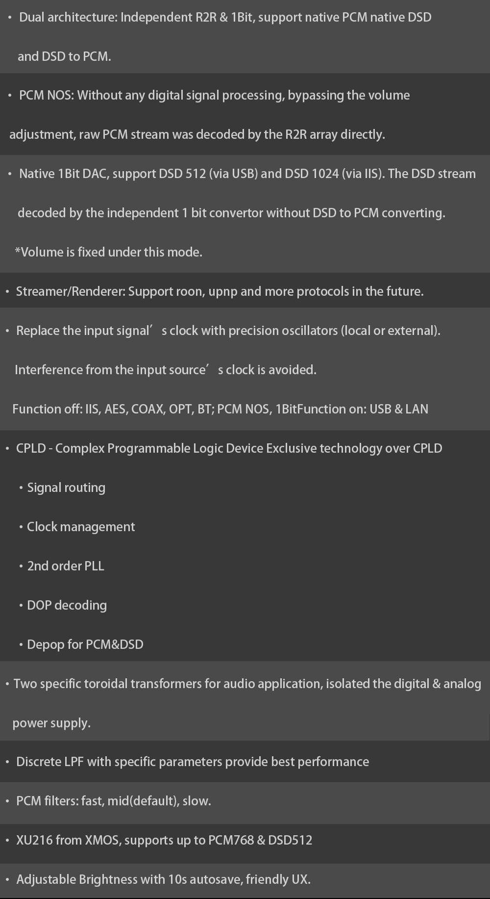 Gustard unveils with its DAC-R26 an absolutely exceptional digital to analog converter. This one uses an R2R architecture using discrete components of very high quality and perfectly optimized to offer exceptional sound performances. Practical, it benefits in addition to a complete connectivity, of a Bluetooth and network connectivity, allowing to control the reading of your music at distance. The whole is integrated in a sublime modern and luxurious chassis of the most beautiful effect.