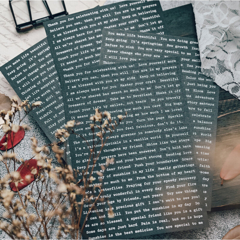 596pcs Foil Phrase Words Stickers Typewriter Sentiment Stickers Junk Journal Planner Vintage Quote Stickers Aesthetic Album Scrapbooking Material Card Making
