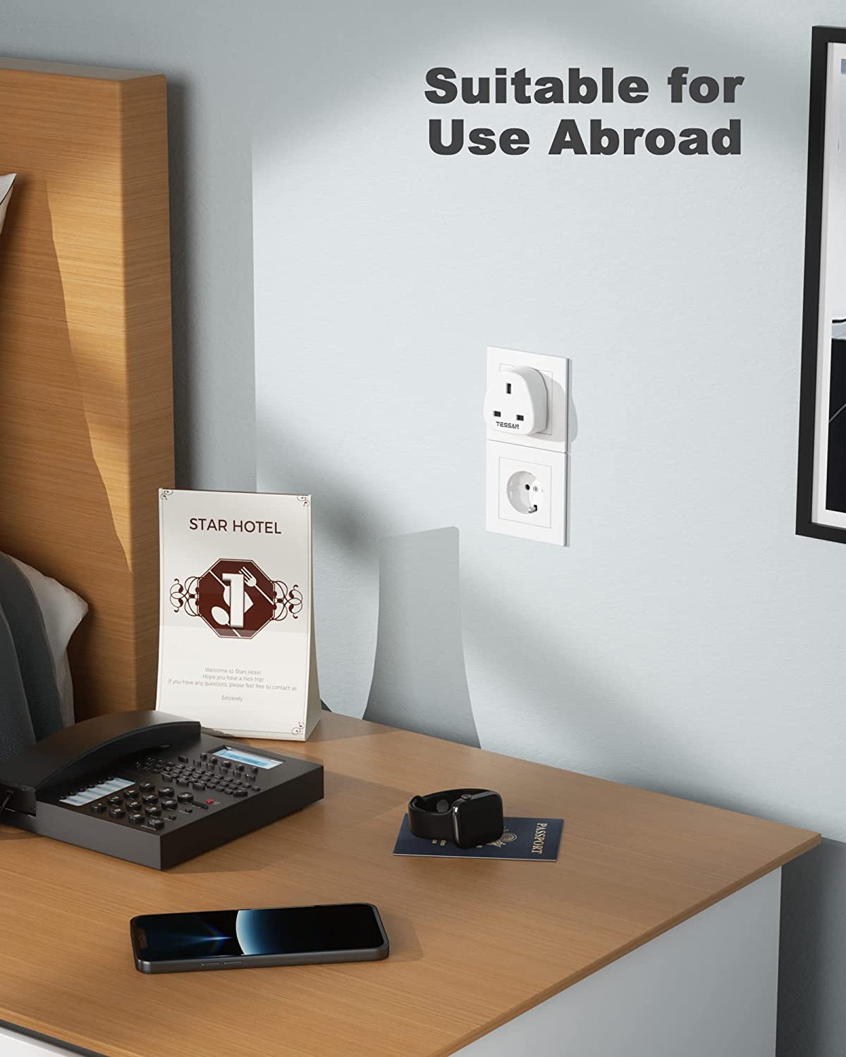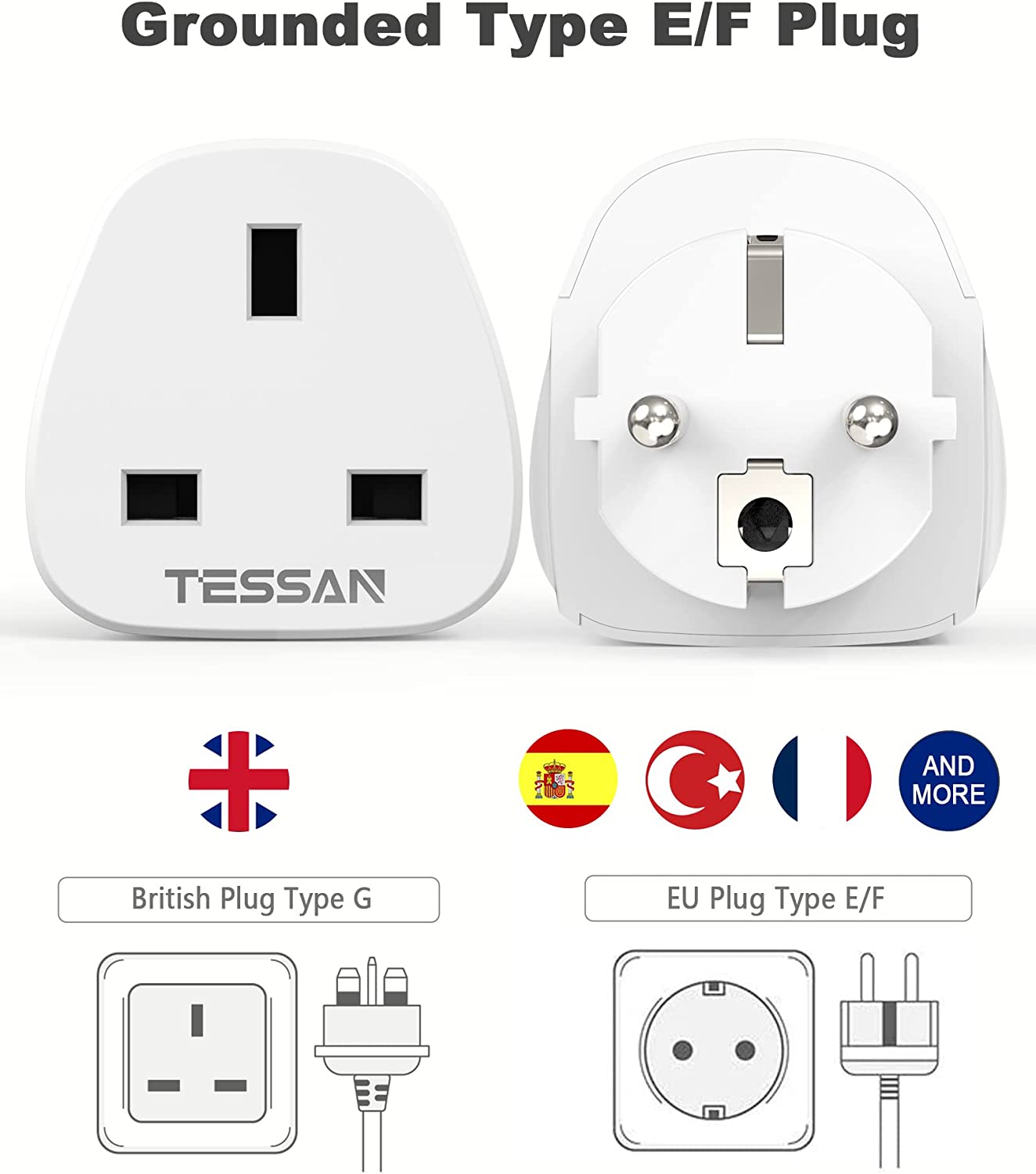 UK to European Plug Adapter: TSEEAN European plug adapter can extend a standard UK type G plug to EU type E/F outlet, idealing for charging electrical products such as mobile phone, tablet, camera etc when you are traveling in Europe