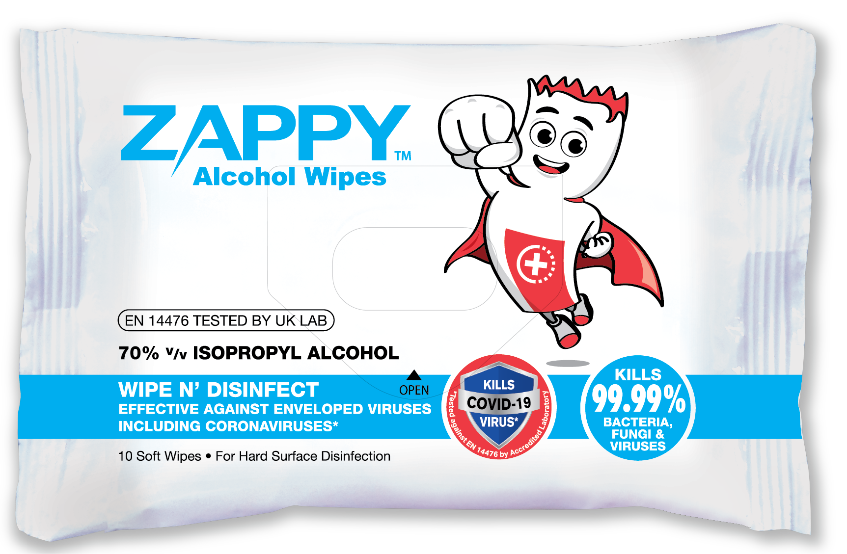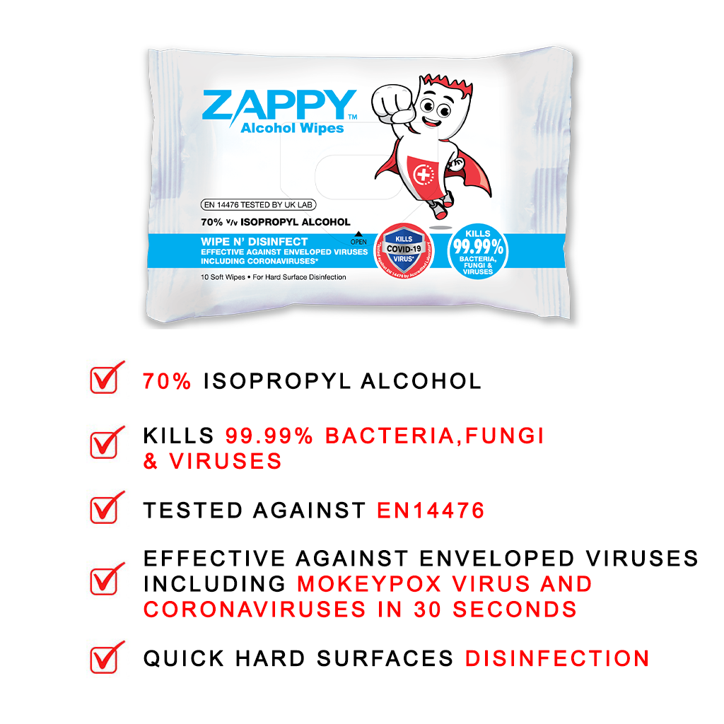 Zappy Alcohol Wipes Resealable 10 Sheets x 6 Packets, 70% IPA Wet Wipes