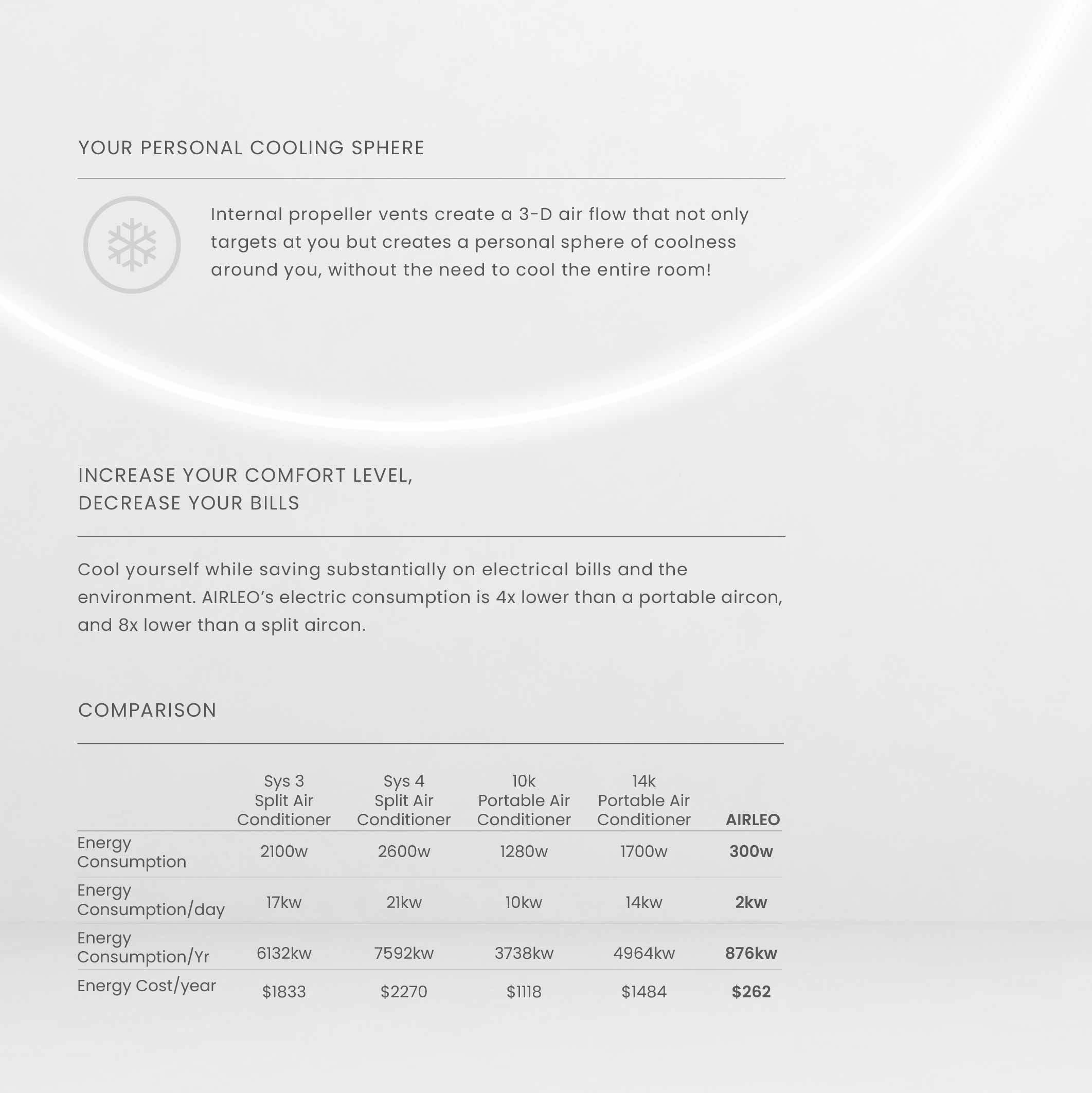 Introducing AIRLEO, a revolutionary way of enjoying cold, clean fresh air that is convenient, energy-efficient and environmentally friendly. It is a first-of-its-kind innovative air-cooling solution that no longer requires the usual hot exhaust air hose that needs installation, thanks to its proprietary patented technology, termed Low-Temperature Evolutionary Ozone (LEO).