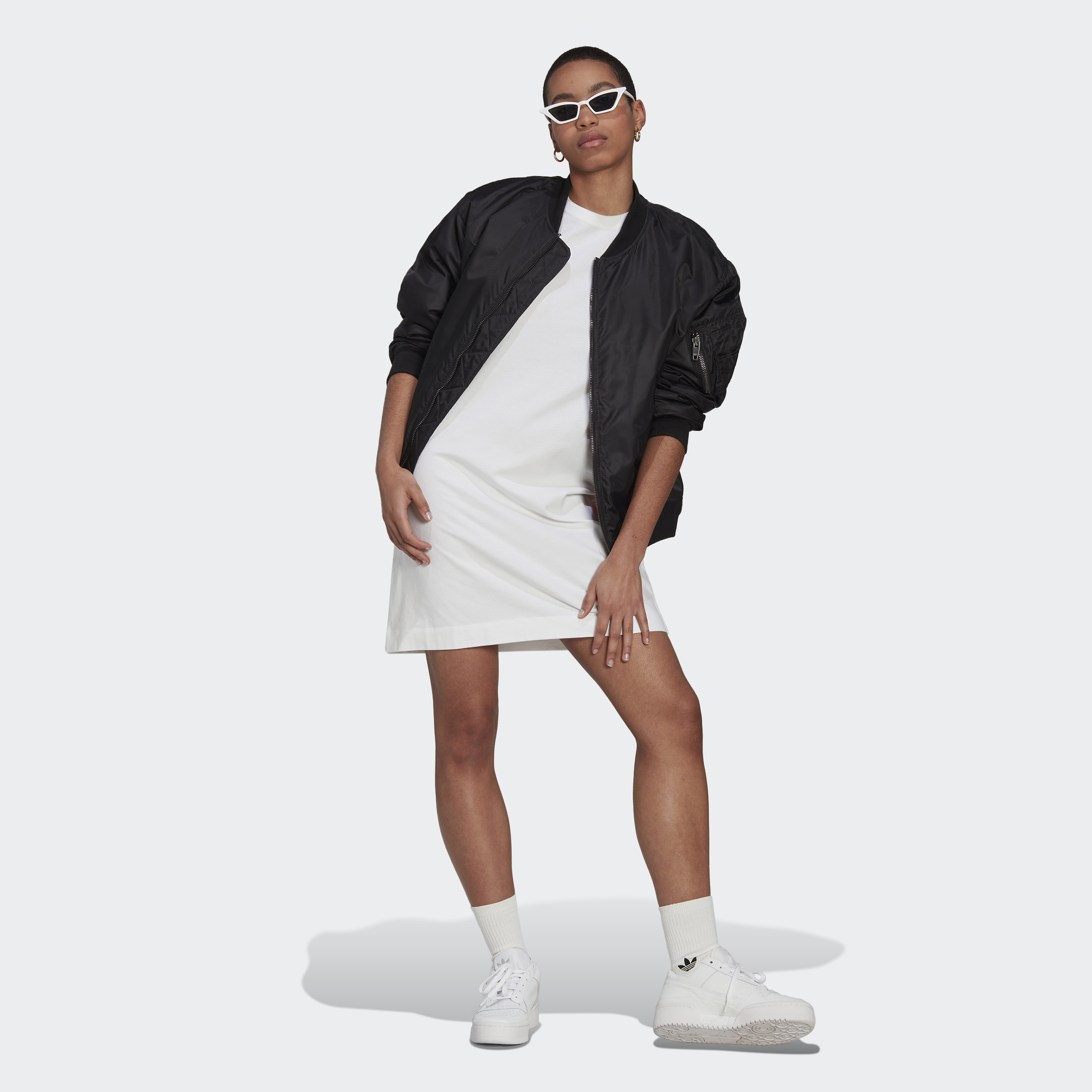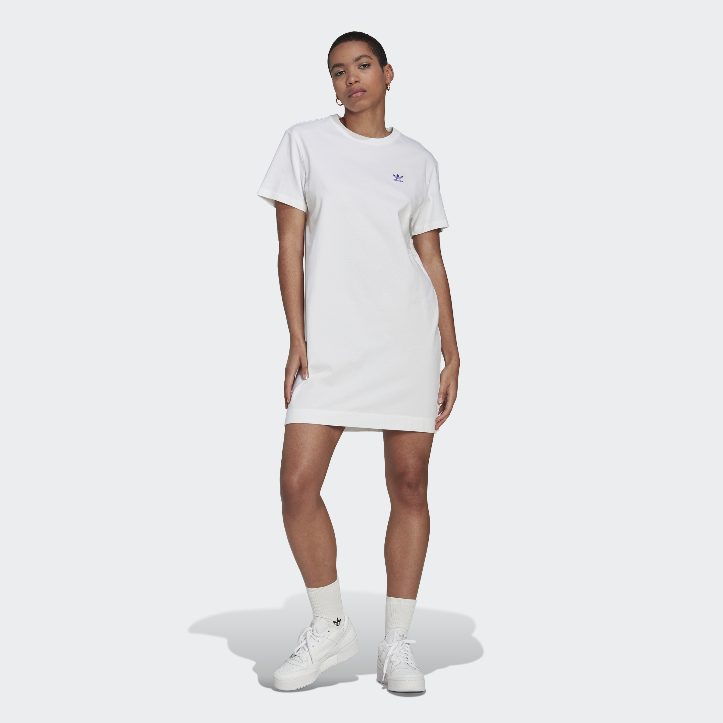 Floaty, roomy, casually cool. Kick back in the low-key comfort of this adidas tee dress. Made of pure cotton jersey for stretchable softness, it has a loose fit and ribbed crewneck that make it feel like your favourite tee — just oversized. The tie-dye Trefoil on the back gives it a pop of bright to keep things fresh. Our cotton products support more sustainable cotton farming.