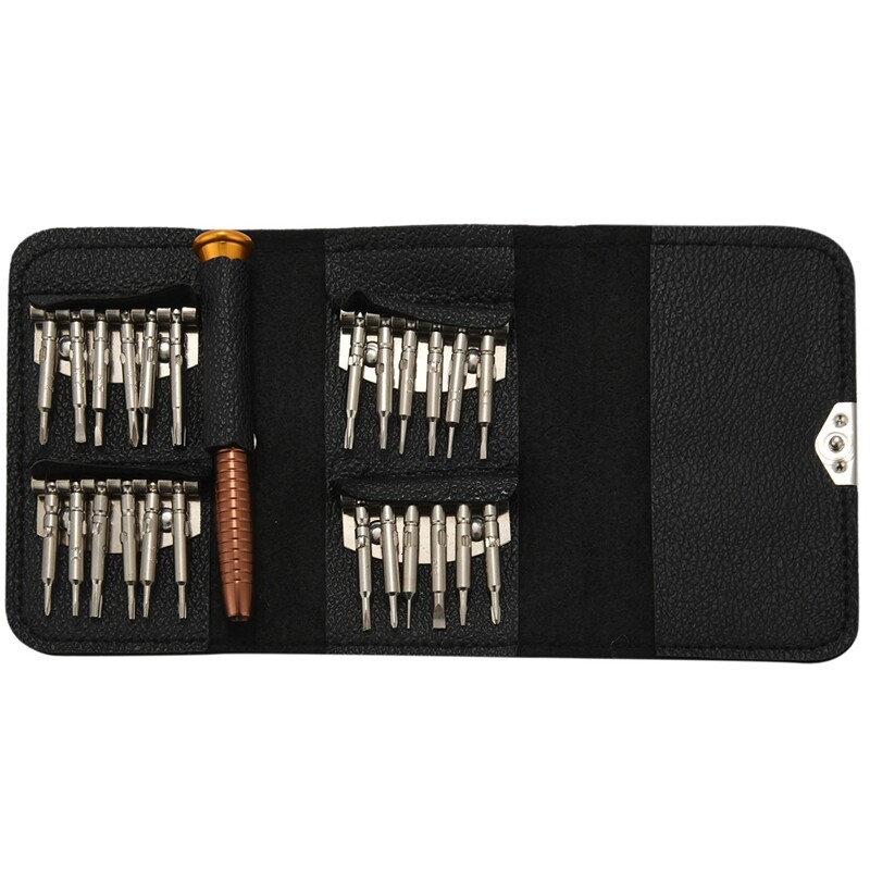 PRECISION MAGNETIC SCREDRIVER:The glasses screws set in this eyeglasses repair kit accompany a metal screwdriver and 24 different sizes screwdriver tips all the tips are magnetic and with sizes engraved on the body. Sturdy and strong for long time use