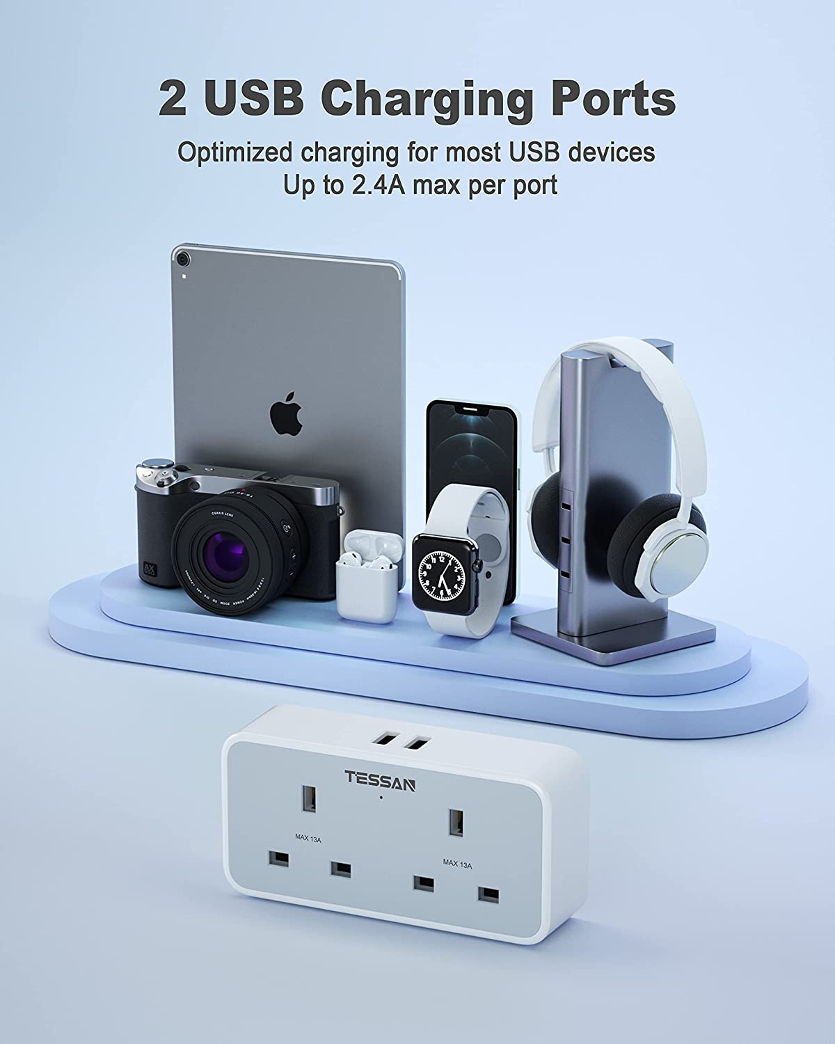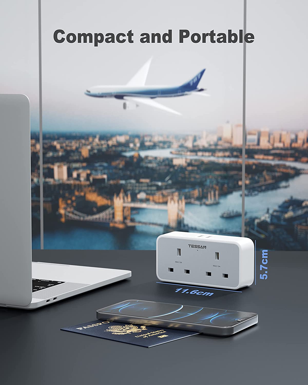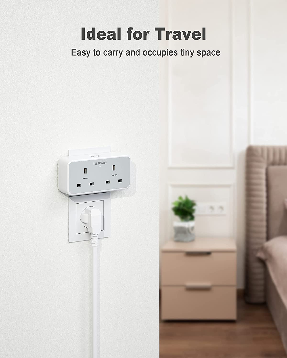 This UK to European plug adapter is used to connect devices with standard UK plugs and European socket (type E/F). Allows you to charge 4 devices simultaneously without a lot of adapter and USB chargers when traveling in Europe.