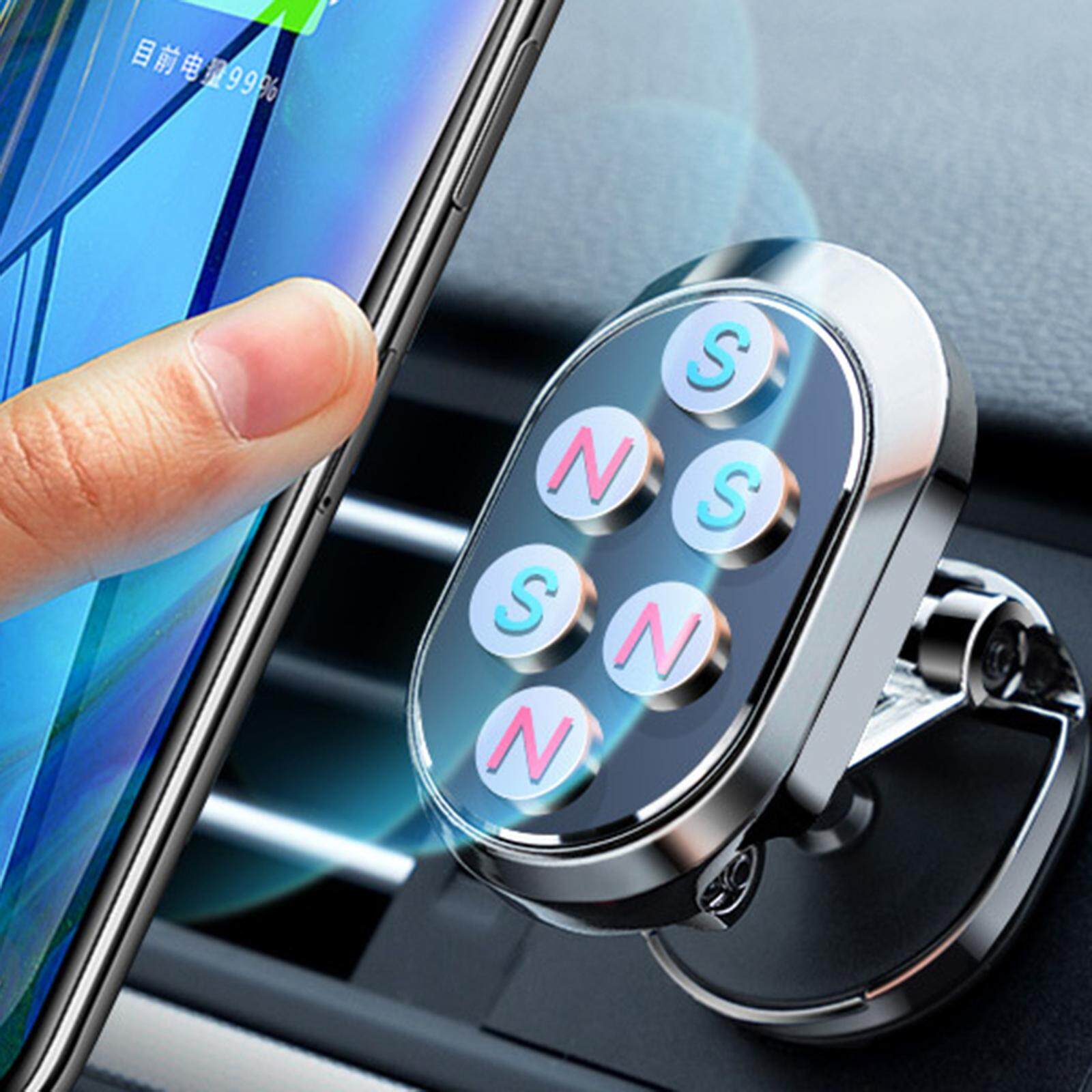 - Magnetic Car Phone Holder: The car phone mount is built in 6 magnets that hold the phone firmly, and does not affect the cellphone signal. Your phone will be kept in place even on bumpy roads.