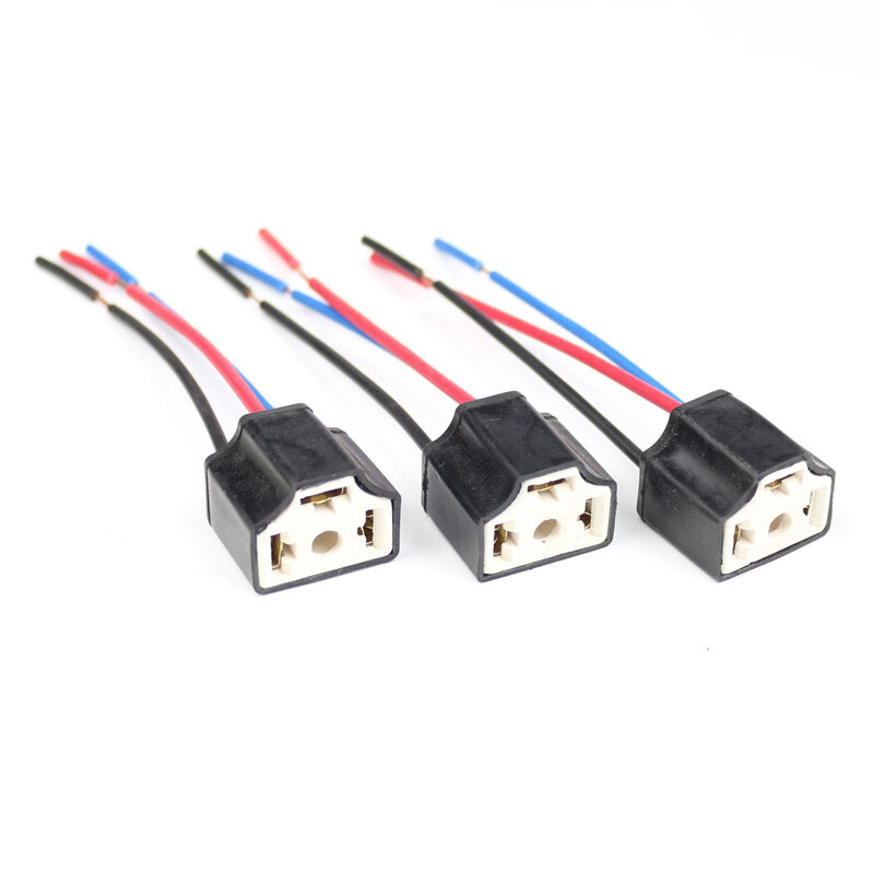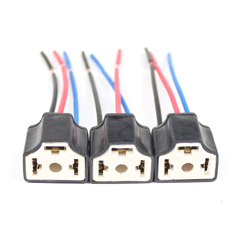 H4 Three Holes Ceramic Wire Wiring Car Head Light Bulb Lamp Harness Socket Plug