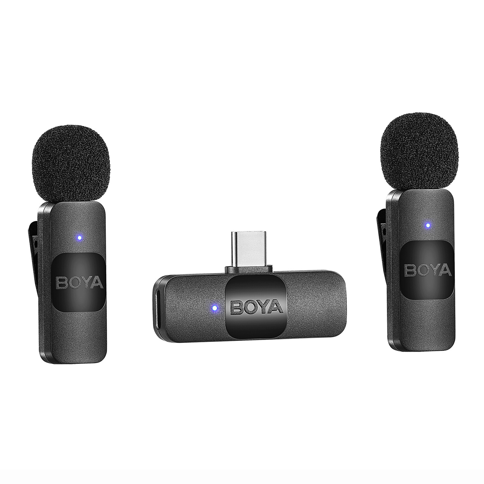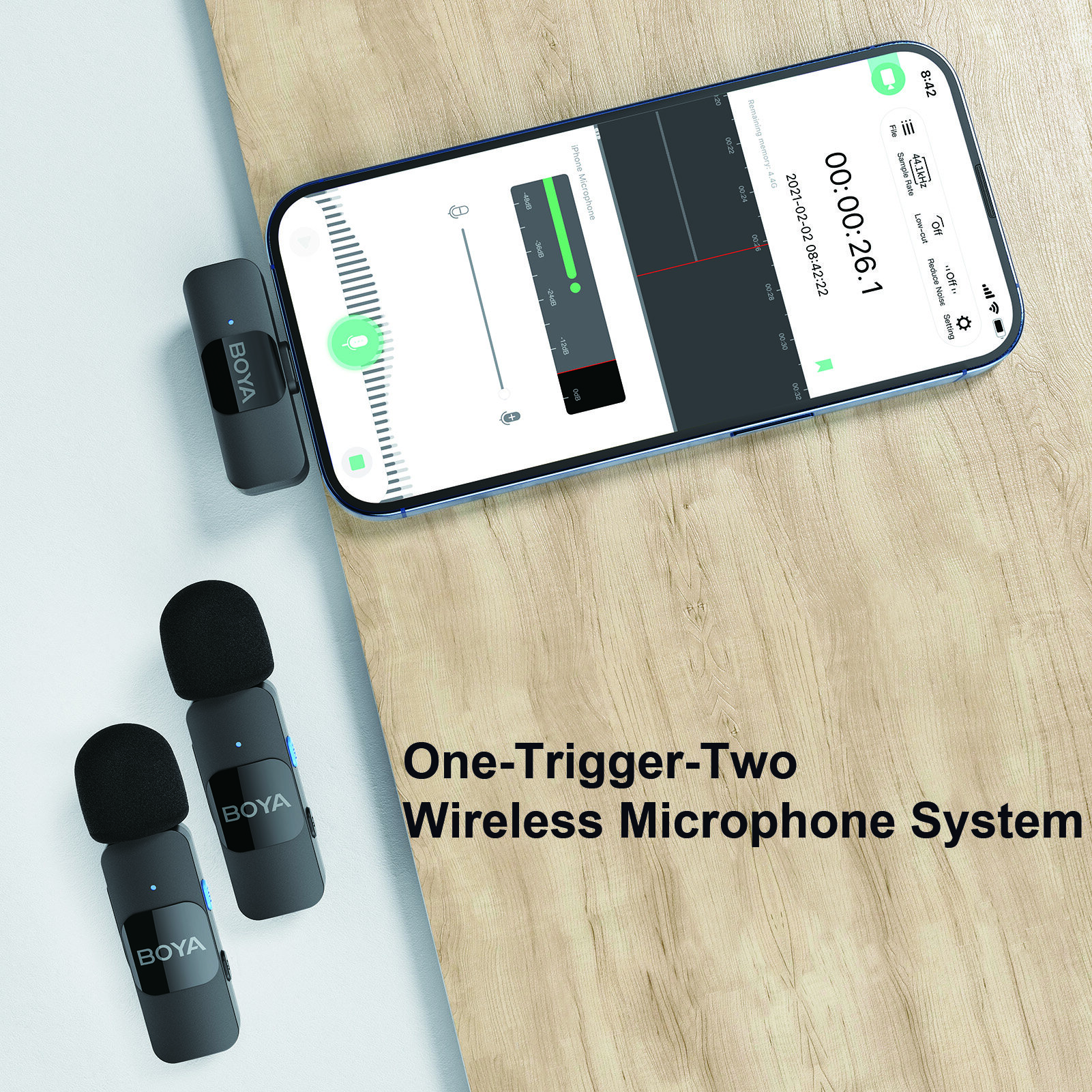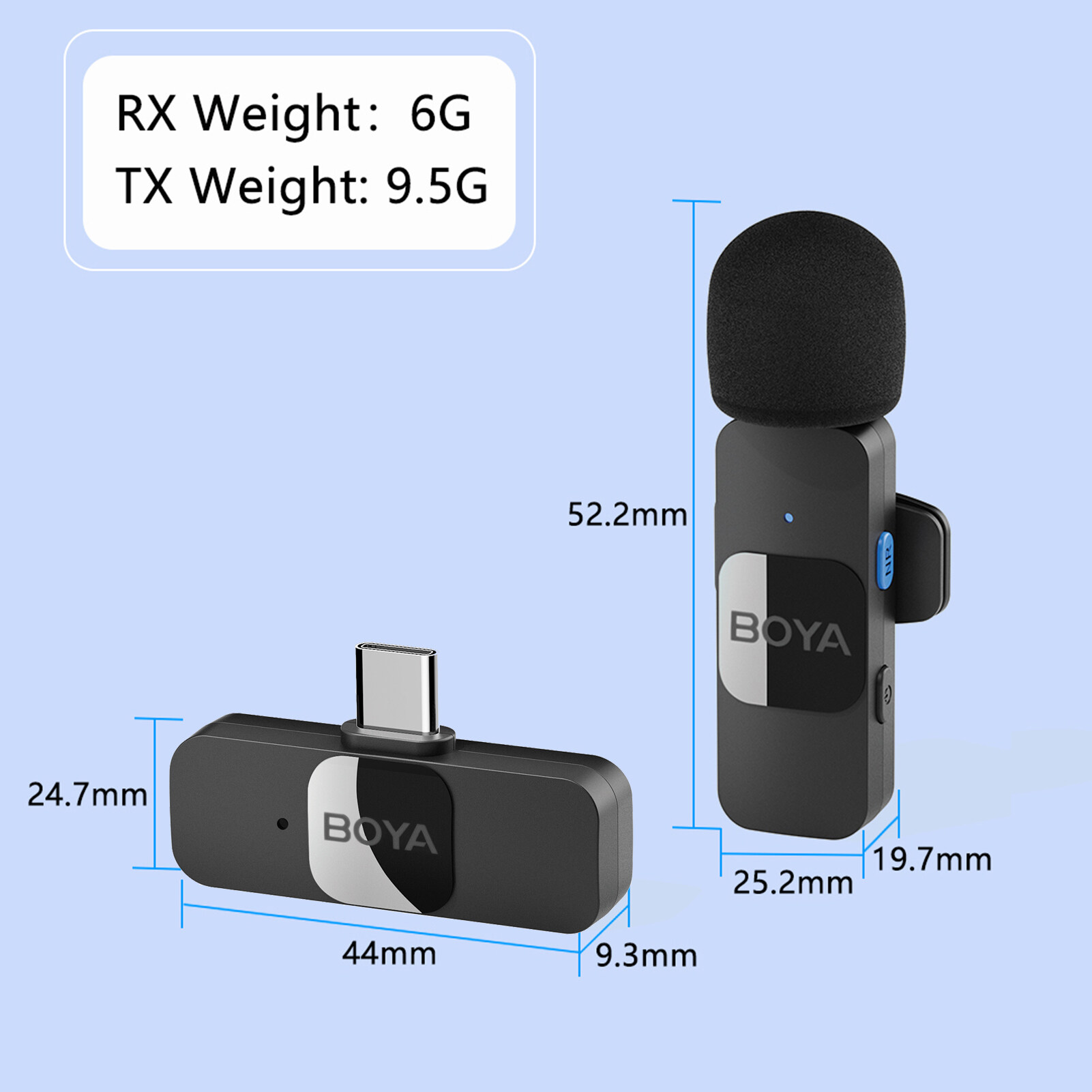 BOYA BY-V20 One-Trigger-Two 2.4G Wireless Microphone System Clip-on Phone Microphone Omnidirectional Mini Lapel Mic Auto Pairing Smart Noise Reduction 50M Transmission Range Replacement for Huawei Sam