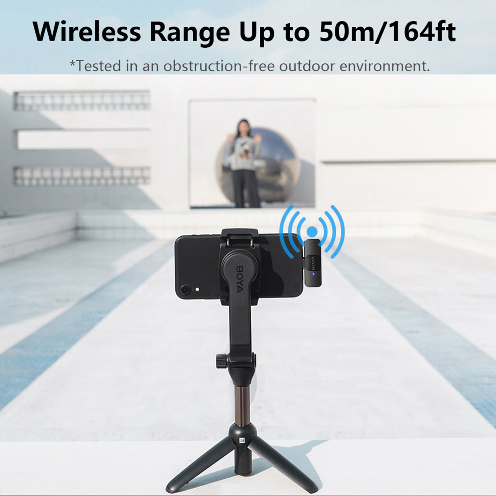 BOYA BY-V1 One-Trigger-One 2.4G Wireless Microphone System Clip-on Phone Microphone Omnidirectional Mini Lapel Mic Auto Pairing Smart Noise Reduction 50M Transmission Range Replacement for iPhone 14/1