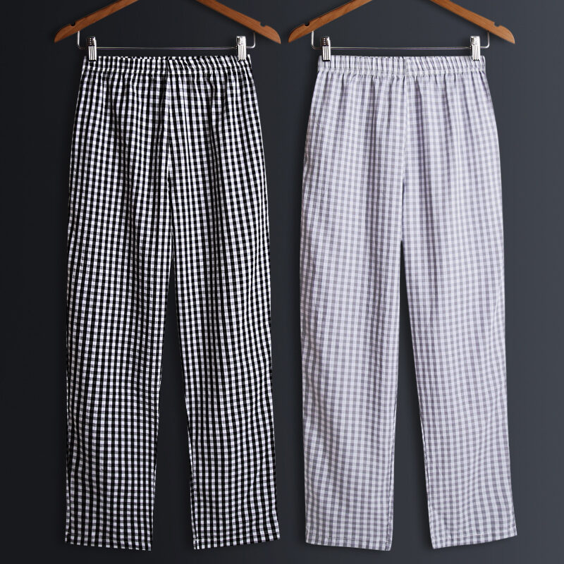 2 Pieces Pajamas Men's Trousers Cotton Home Pants Loose Cotton Plaid Spring and Autumn Thin Home Pants Summer Air Conditioning Pants