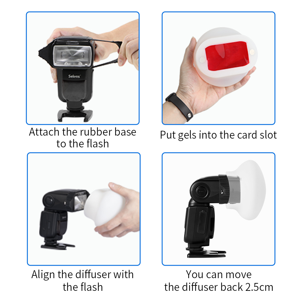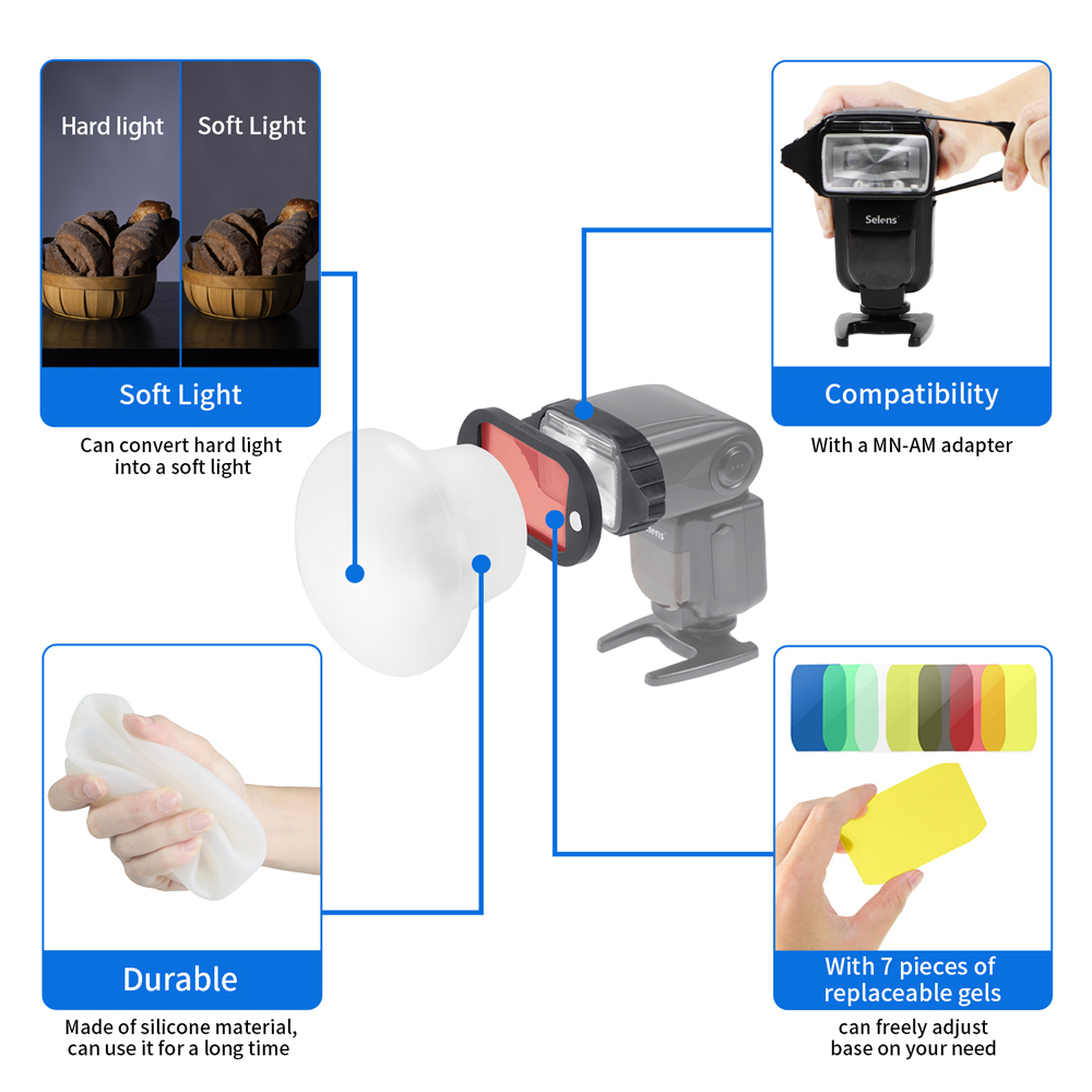 Selens Flash Light Diffuser Kit Magnetic Silicone Ball Diffuser with Modular Lighting Modifier Base and Filter Gel Kit for Photo Studio Flash Light Photography