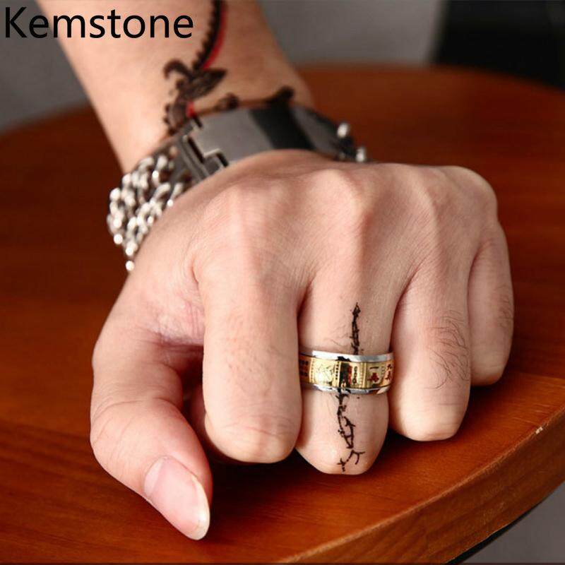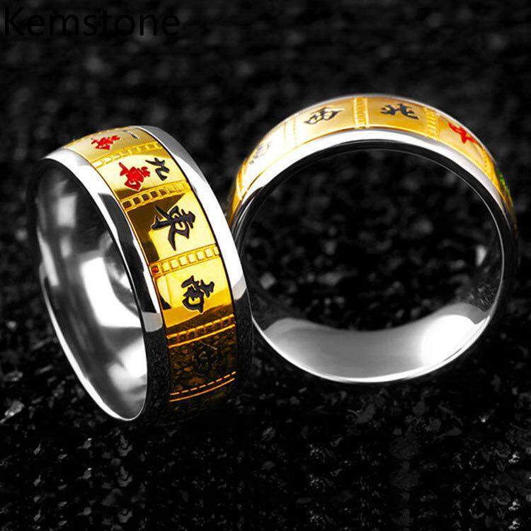 Kemstone Fashion Stainless Steel Mahjong Rotatable Rings for Men Lucky Jewelry Gifts Hot Sale