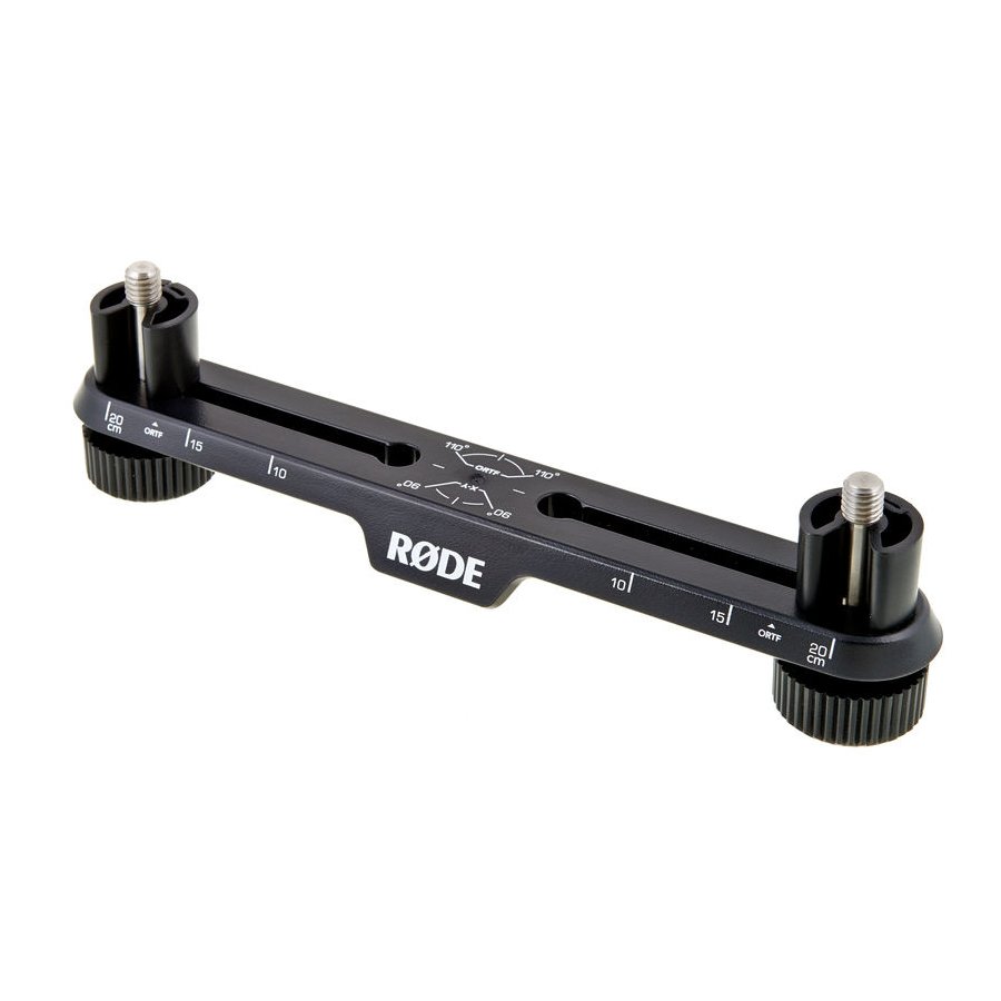 The RØDE Stereo Bar is a robust solution for mounting two microphones in a stereo array. With clearly marked spacing of up to 20cm, as well as angle and measurement indicators for ORTF and XY positioning, the RØDE Stereo Bar makes it quick and easy to achieve complex recording arrays. The 5/8” mounting threads are supplied with accompanying spacing clips to allow for easy positioning for stacked arrays, and the robust ABS construction makes the Stereo Bar stable and durable, allowing it to easily support the weight of two large diaphragm microphones such as the RØDE K2.
