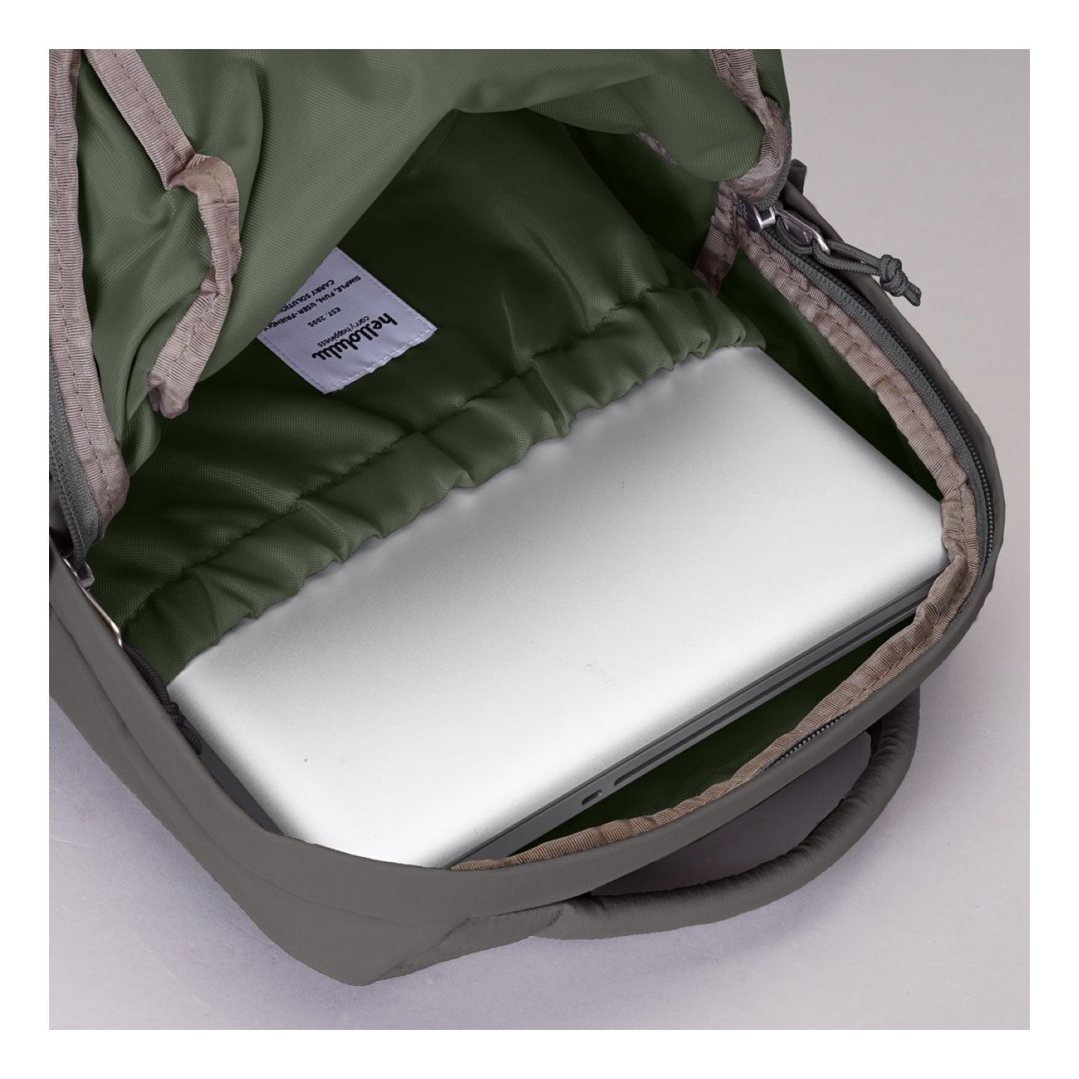 • Full width zippered main compartment
