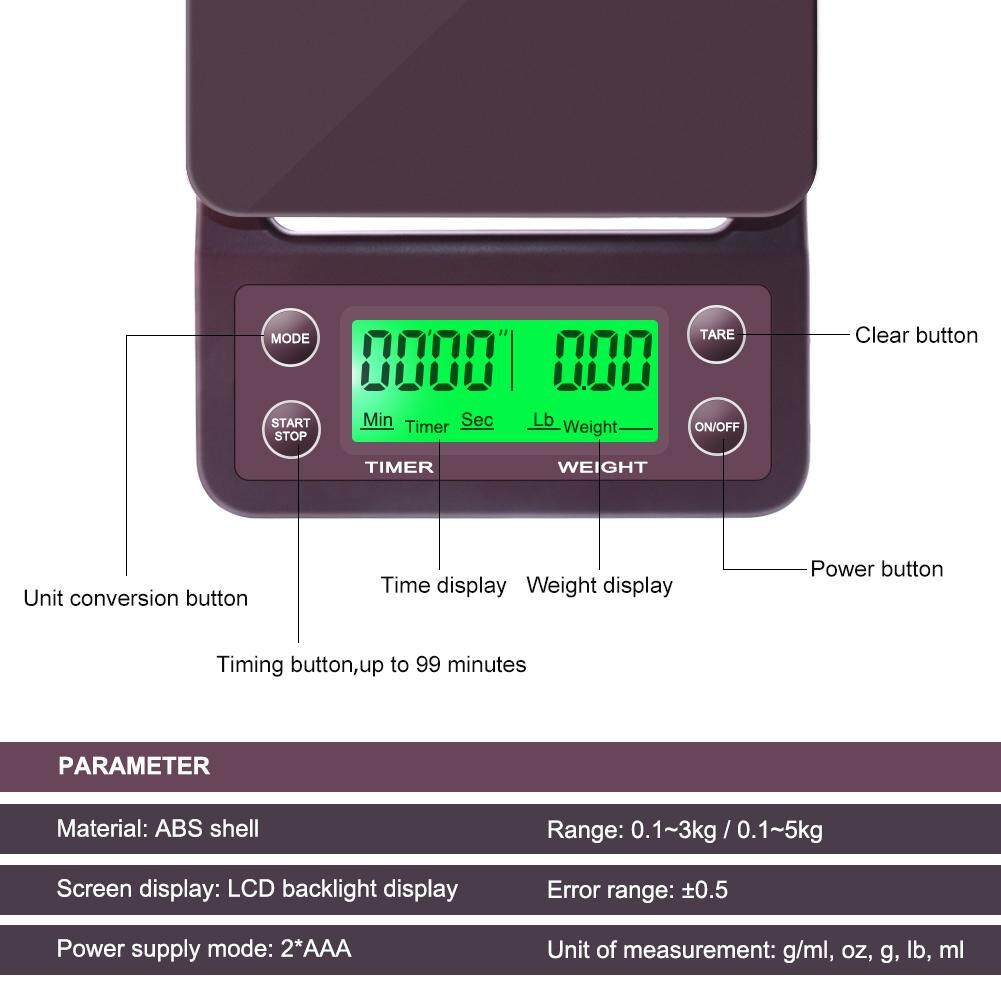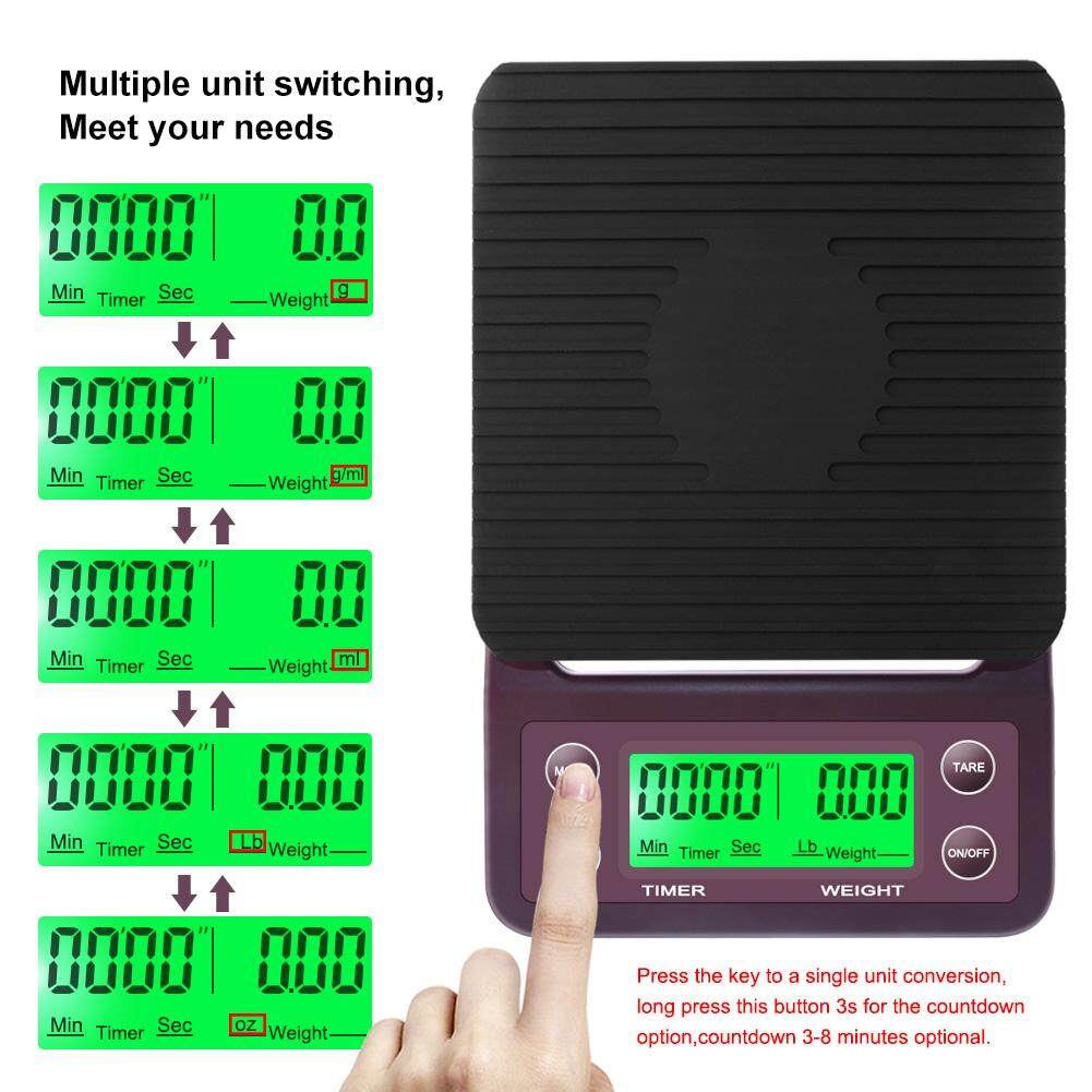 3kg/0.1g 5kg/0.1g Drip Coffee Scale With Timer Portable Electronic Digital Kitchen Scale High Precision LCD Electronic Scales