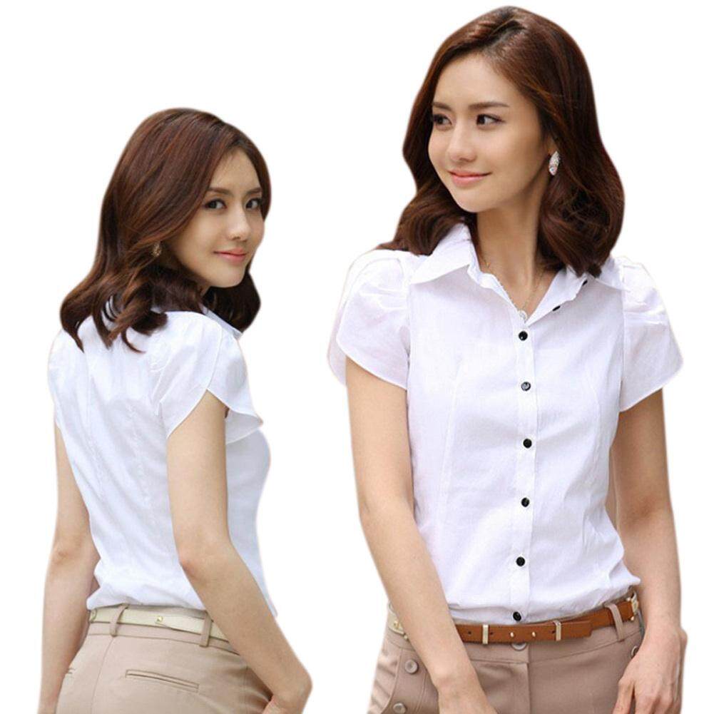 Clothes Type: Women Summer Formal Shirts Short Sleeves Slim Fit Office Lady Turn-down Collar