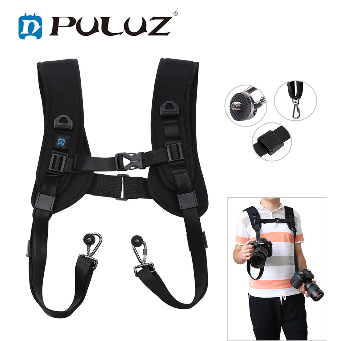 PULUZ Quick Release Double Shoulder Professional Rapid Camera Shoulder Sling Neck Wrist Strap for Canon Nikon Sony DSLR ILDC DV Outdoor Shooting