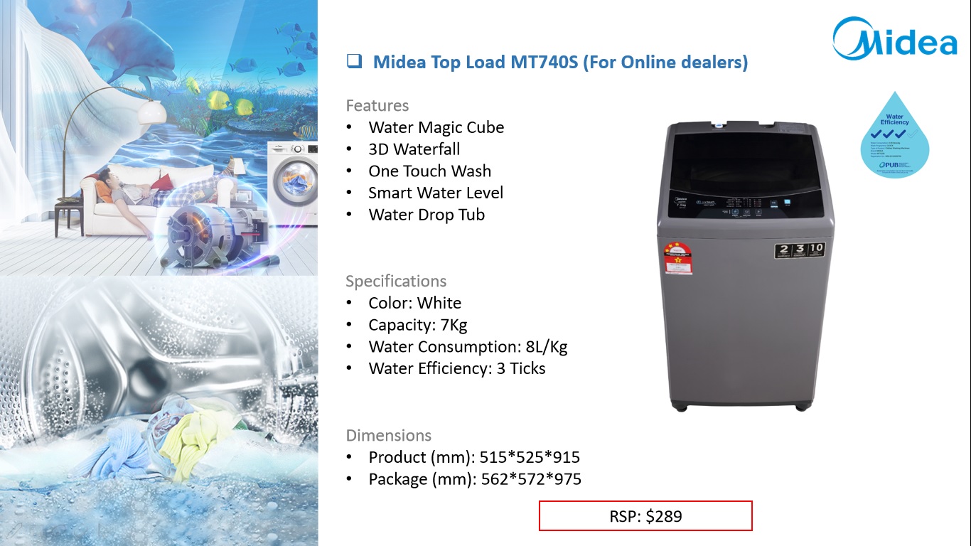 Midea 7kg Top Loading Washing Machine MT740 READY STOCK, DELIVERY WITHIN 3 DAYS
