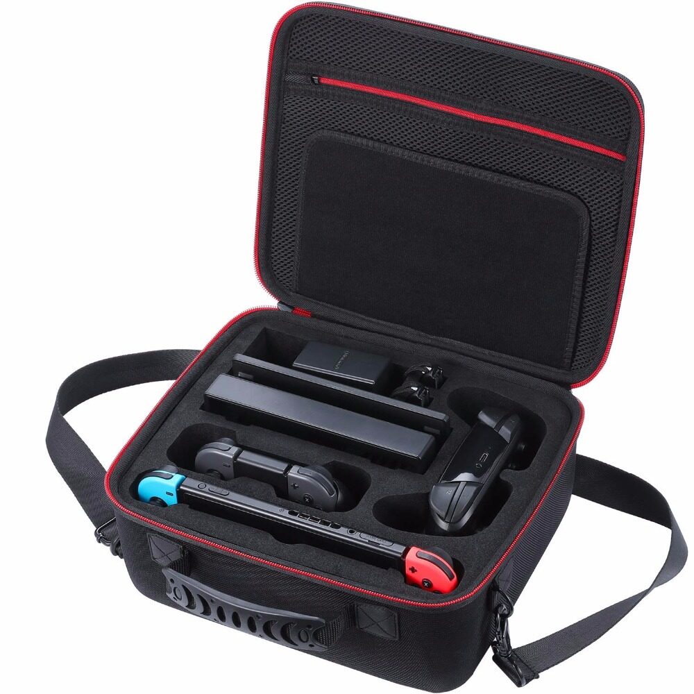 Feature a comfort shoulder strap and non-slip handle to carry Switch and accessories on trip, and case is compact to fit in backpack or suitcase.