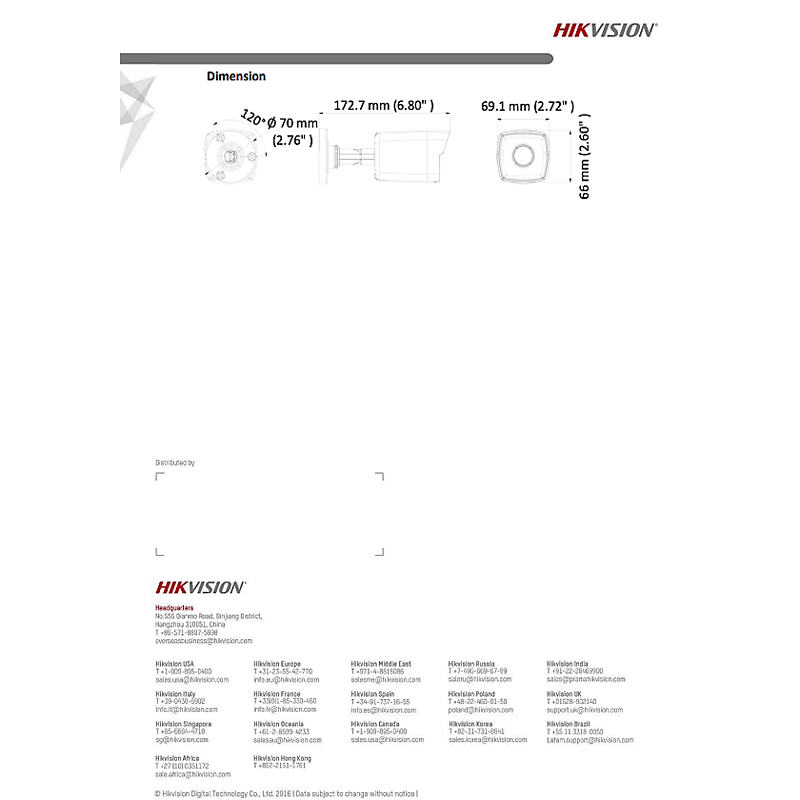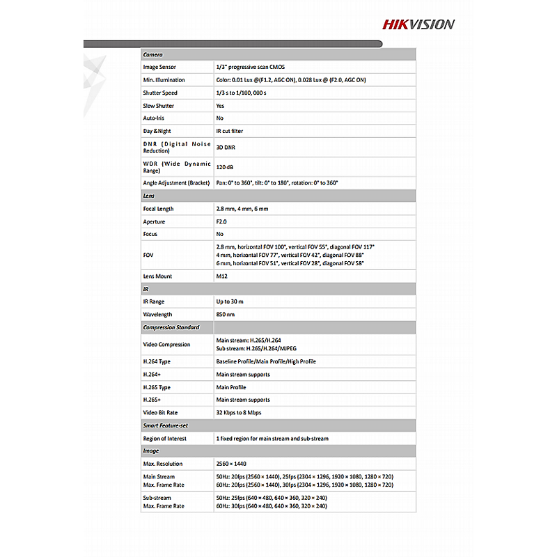 Hikvision 4MP IR Network Bullet PoE IP Camera (2.8mm) DS-2CD1043G0-I