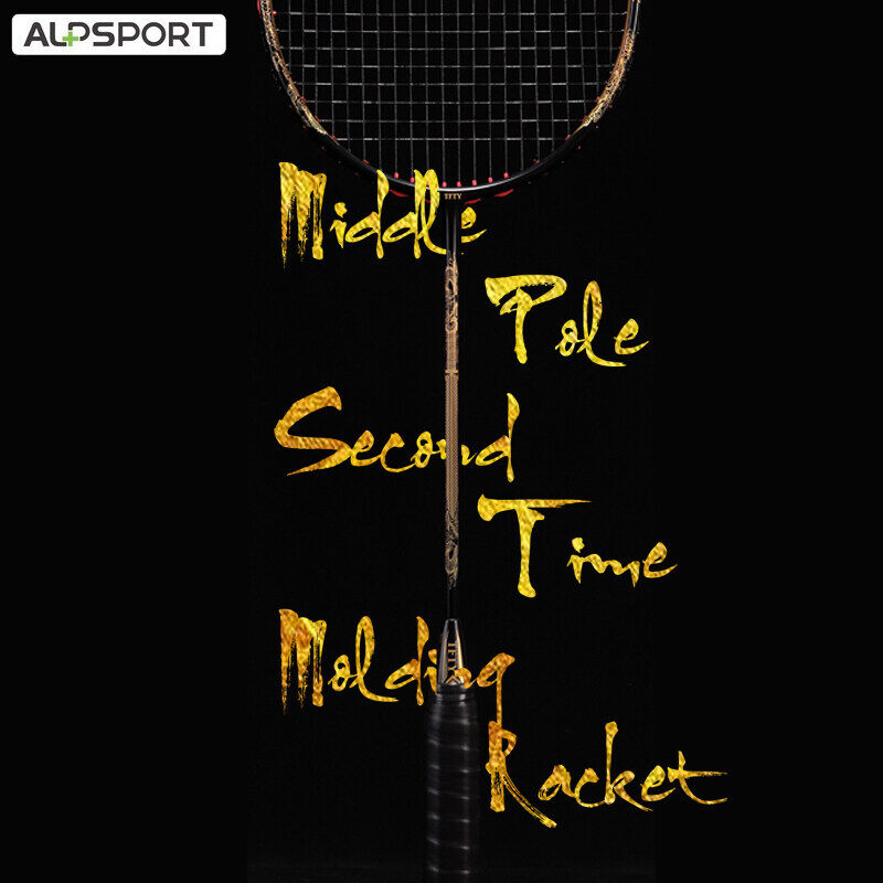 ALP TAJ 4U 35Lbs 7mm G5 Powerful Excalibur Golden Dragon Badminton Racket With Secondary Reinforced Full Carbon Fiber Reket Pro Offensive Single Training Raket With Gift Box