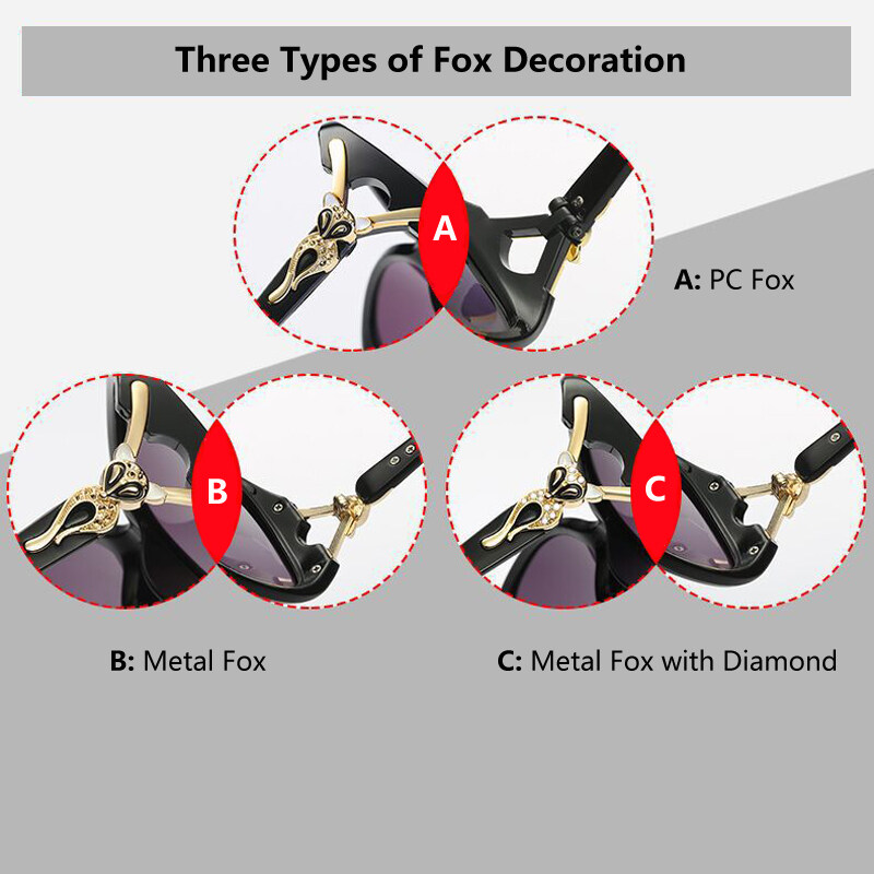 IMPALA QT102W Fashion Women Polarized Sunglasses Korean Style Anti UV400 Oversize Cat Eye Sun Glasses Block Sunshine Anti Glare Black Shades HD Lens Fox Shaped Decoration Black Spectacles 4 Colors ava