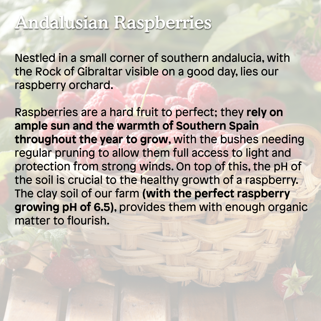 Juicy Italian peaches are balanced with plump Andalusian raspberries, bringing a pleasant sweet-sour flavour to the mix.