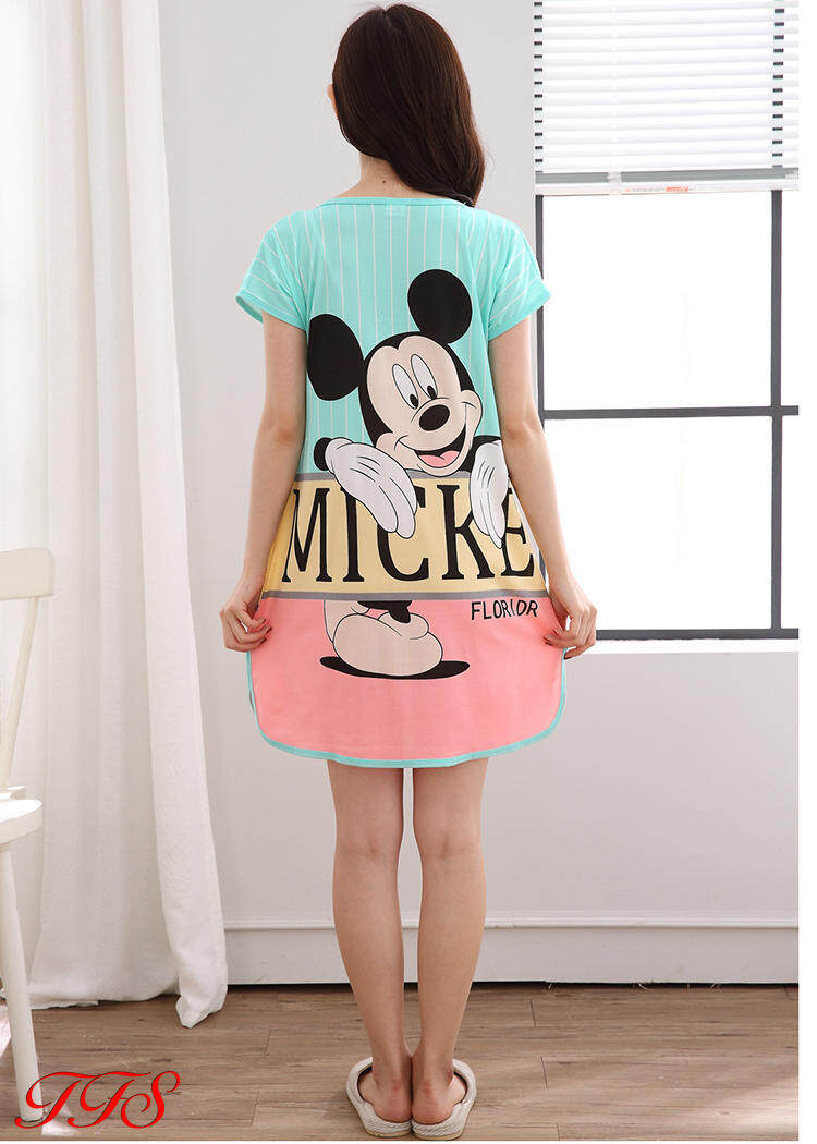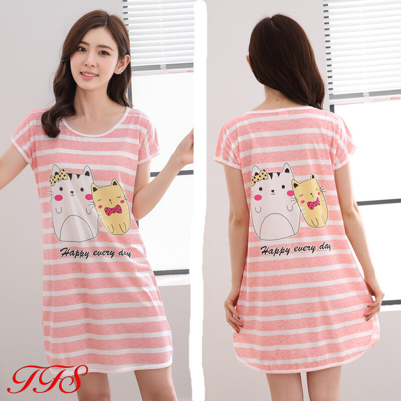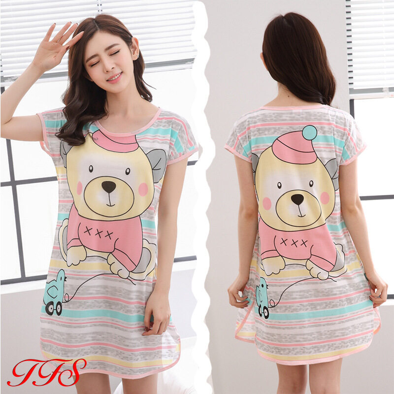 TFS Sleepwear for Women Short Sleeve Sleepwear Women Sleeping Dress Thin Cartoon Silk Pajamas Women