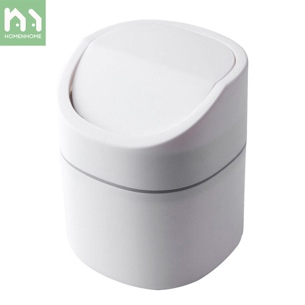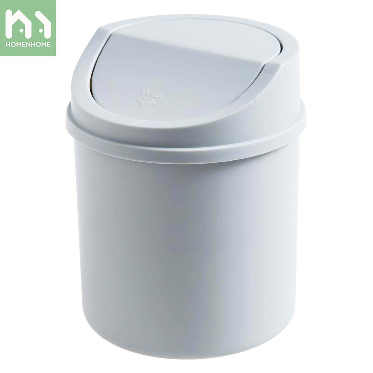Homenhome Desktop Trash Bin with Lid Office Mini Small Wastebasket Household Bedside Storage Bin Trash Can