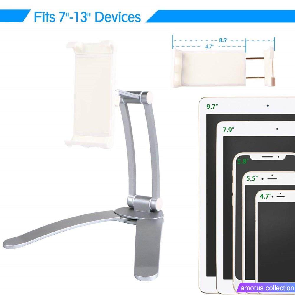 Adjustable holder can hold iPad and other tablets from 12.5cm-19cm width