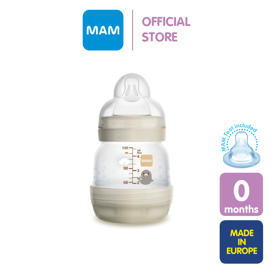 MAM Easy Start Anti Colic Self Sterilising Baby Bottle with Extra Slow Flow Silicone Teat (130ml)