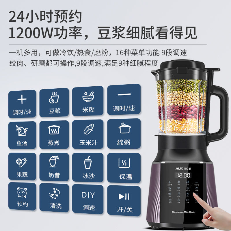 AUX Silent wall breaking machine speed blender household small-scale heating full-automatic multi-function soybean milk machine Soya Milk Maker juice food processing machine HX-PB9295A