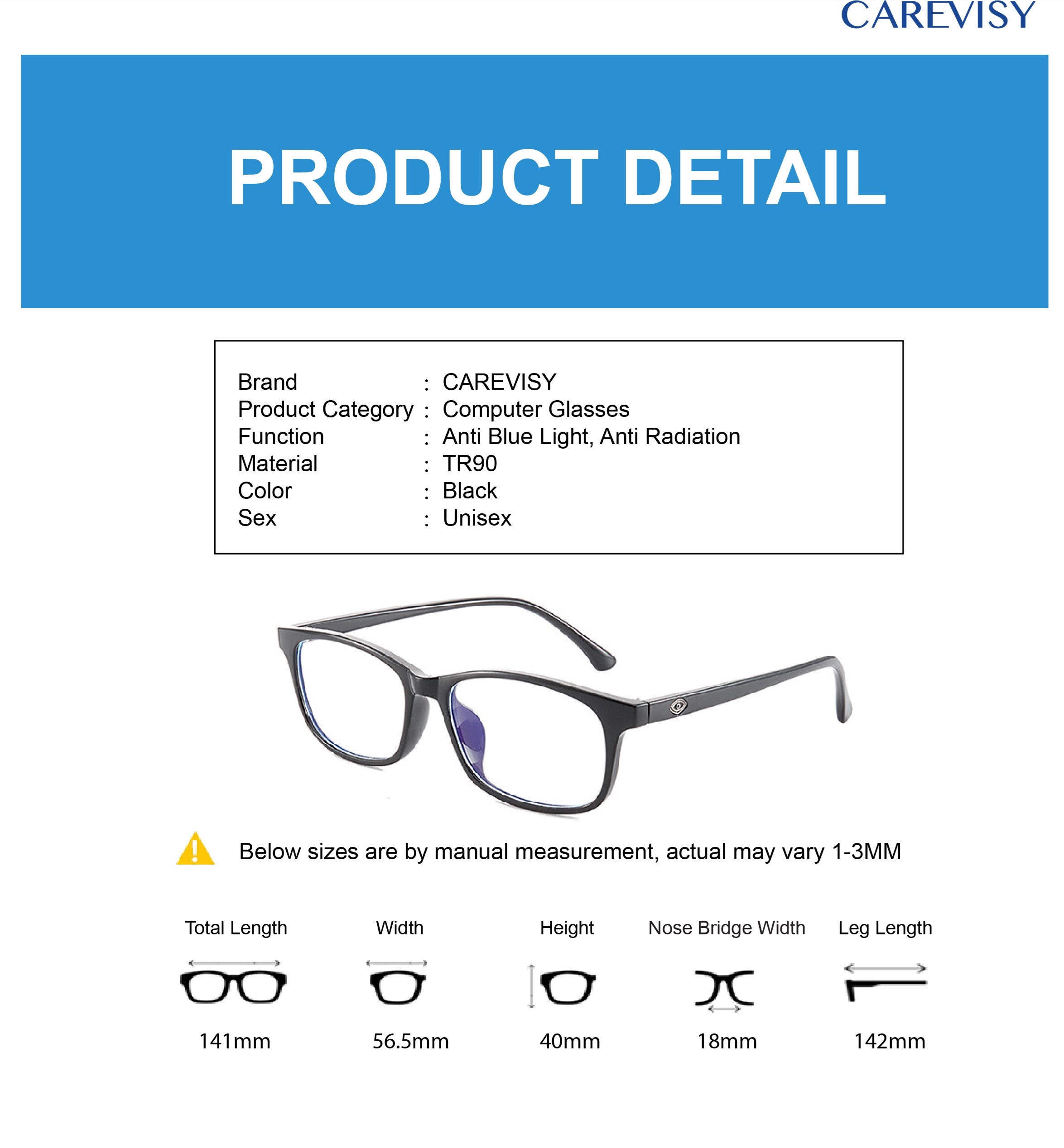 CAREVISY Classic Anti Blue Light Glasses Computer Glasses Spectacles Anti Radiation Anti Eye Fatigue PC Gaming Eyeglasses for Adults Men Women C6012