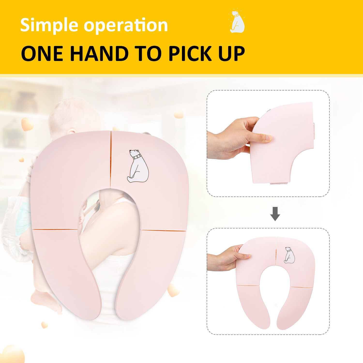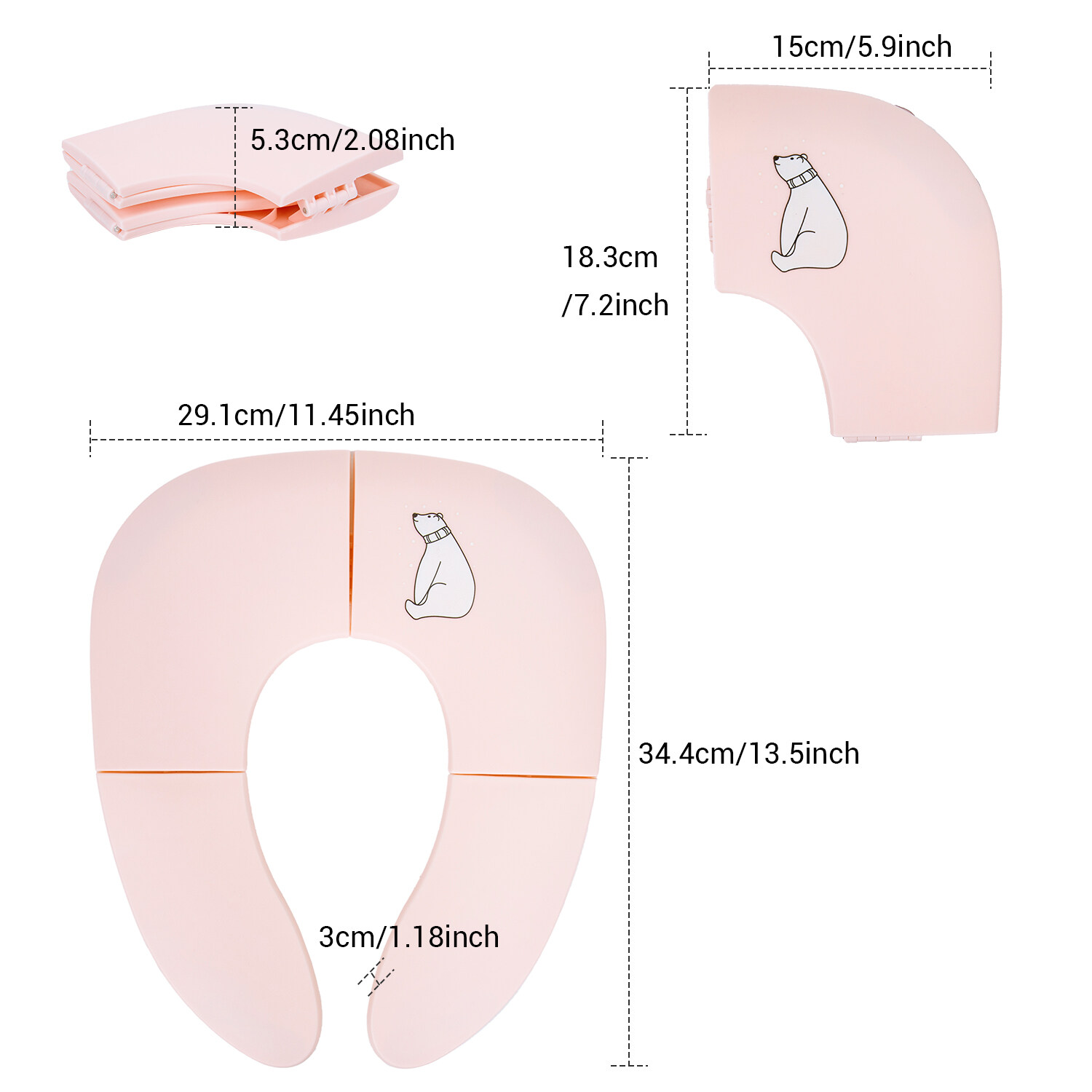 Freely switch Foldable To Unfoldable Design - Toilet Seat cover Folds up pretty small size of 7.2''L x 5.9''W x 2.8''H to bring to public restrooms easily and perfect for your children's away-from-home bathroom's needs and compact for "on the go" and traveling;