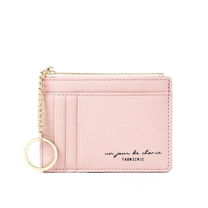 MINGKE Card Holder Wallet Coin Purse for Women 8 Cards Zipper Keychain Mini Simple Fashion