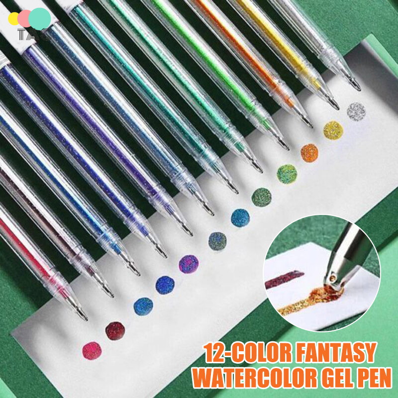 TAC 12 Colors Glitter Gel Pen Set Children Drawing Color Highlighter for Coloring Books Craft Doodling Painting 【Fast delivery】