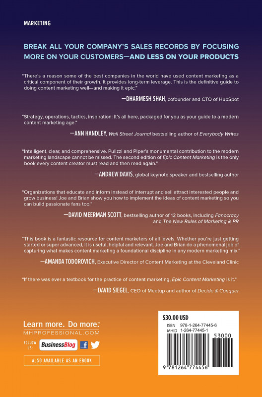 When Epic Content Marketing was first published eight years ago, content marketing was just starting to pick up speed in the marketing world. Now, this approach―which includes everything from blogging to YouTube videos to social media―is the core of most organizations’ marketing plans.